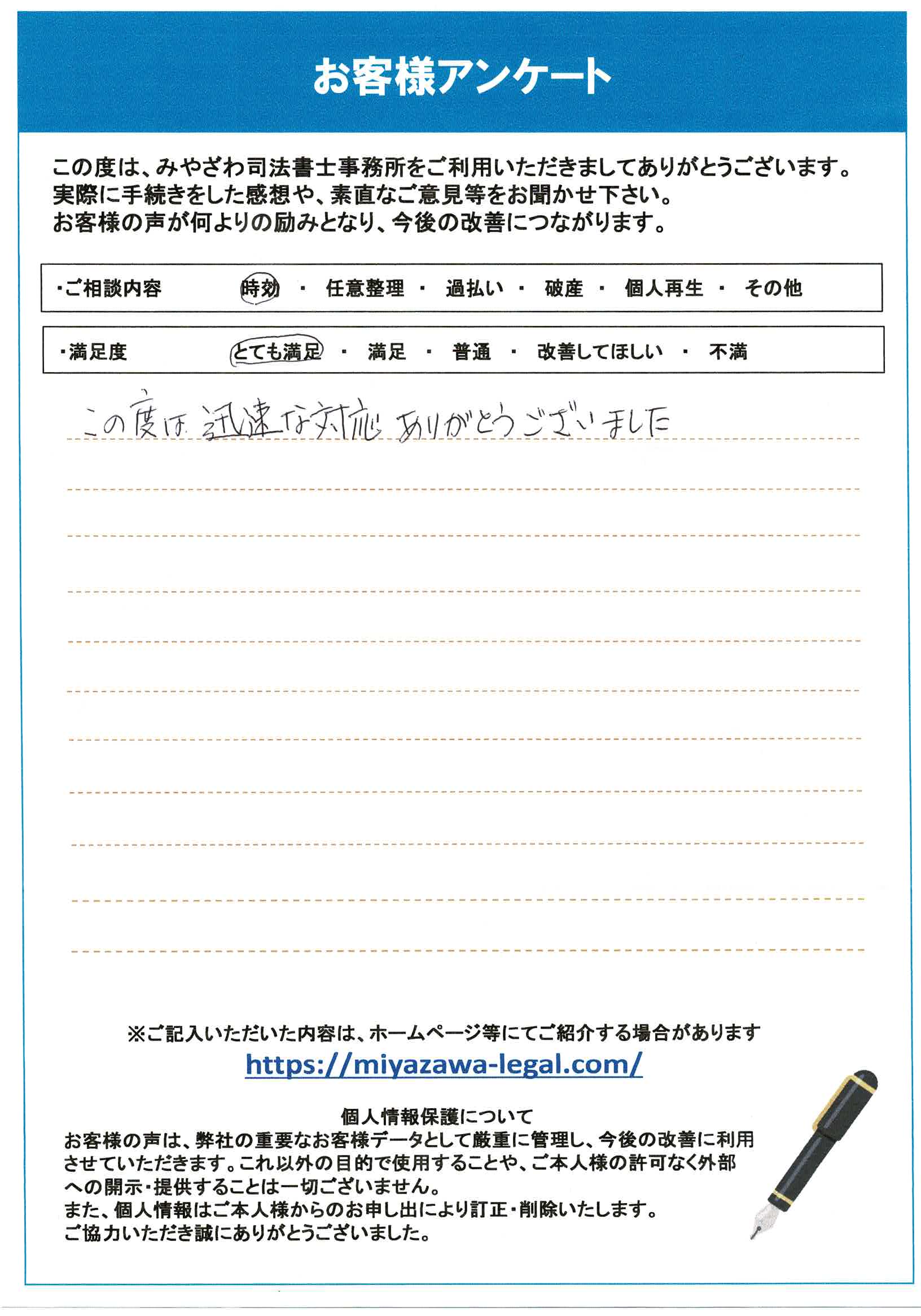 実際にご利用いただいたH様からも「迅速な対応」とのご評価をいただいております。