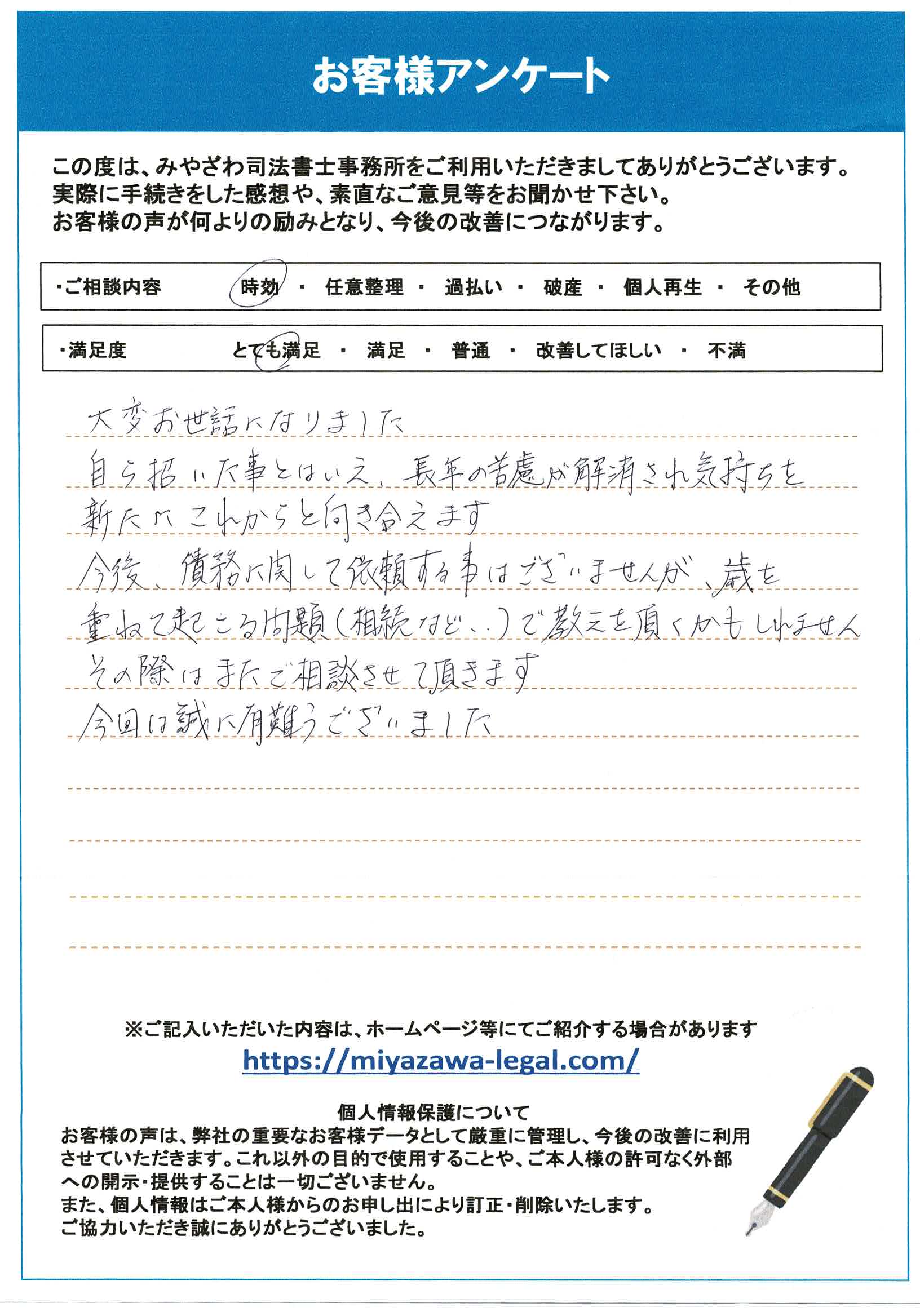 実際にご利用いただいたT様からも「自ら招いた事とはいえ、長年の苦慮が解消され気持ちを新たにこれからと向き合えます。」とのご評価をいただいております。